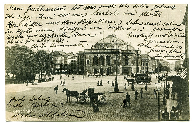 “17/9/07. Kopenhagen muss ich sagen eine wunderschön stadt. Lange Linie ist einziges in ganzen Welt. Sehr geeherte Frøken Borch! In Bornholm habe ich die Liebenswürdigkeit un Gutigkeit (der) Dänen kennen gelernt und gestern Abend die Kunst. Gestern war ich im Teather Oper “Bajatz” (der Bajazzo) und “Napoli”. Beck hat getanz – wunderbar. Herold gesungen – himmlisch. Balett war entzückent – die Dänen können schön tanzen. Frau Gudbransen hat auch sehr schön getanz. Ich sage Ihnen es war herrlich im Theater. Rita Möller und Herrn Helge Nissen haben auch schön gesungen. Im Theater waren Königen von England und Russland und Dänische Prinzessin.