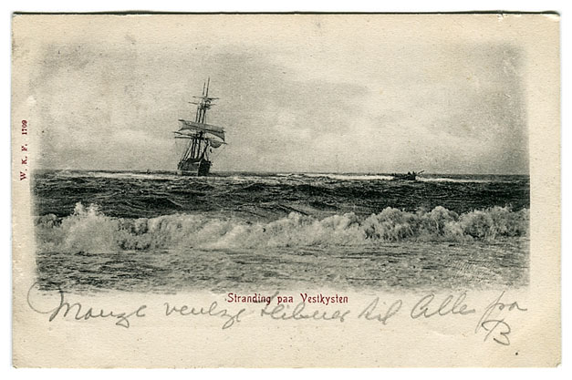 Brevkortet antages at være stemplet den 11. december 1905 i København Ø., derefter den 12. tidligt om morgenen i Rønne og sidst på formiddagen i Allinge. Det er adresseret til Frøken Dörte Borch, Adr. Hr. Distriktslæge Borch, Allinge, Bornholm, og teksten er: