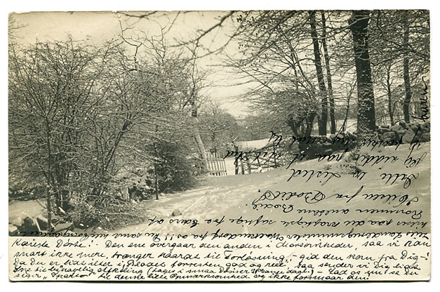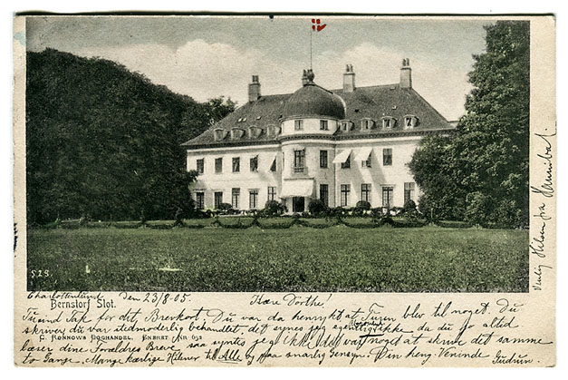 Kortets motiv er Rosenvold, en herregård på nordsiden af Vejle Fjord. Er der her et sammentræf med at Dortheas forældre og lillebror opholder/opholdt sig ved Vejle på den tid (se 19. september 1905)?