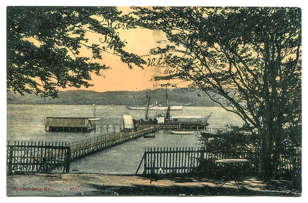 Sigfred er på rejse med mor og far til Vejle, og kommer iflg. brevkortets motiv også ud til Munkebjerg- sandsynligvis som led i en turistfart på fjorden.