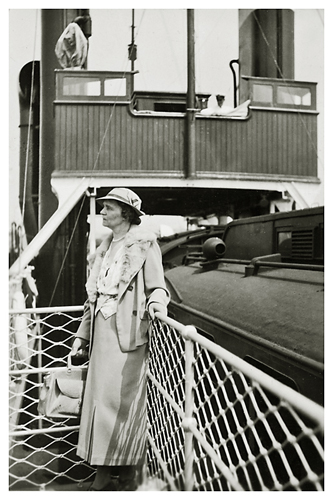 De gik så op på promenadedækket, hvor de tilsyneladende installerede sig på bedste måde med kikkert, fotografiapparat, rejsefører og æsken med marcipan, som Arne var smuttet ud på stationen i Lübeck for at købe.