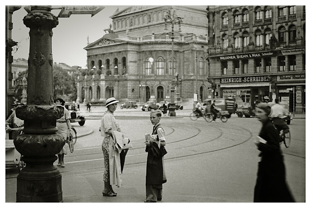“Opernplatz fra Goethesgade” med Dorthea og Arne i forgrunden.