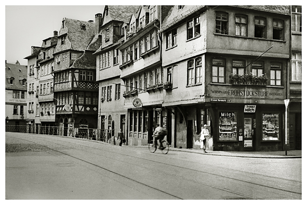 Frankfurts gamle bydel, Römer, i området ved og vest for domkirken må  i erindringen have stået som noget helt særligt og malerisk for Dorthea og hun må have glædet sig til at vise drengene dette område med gamle bindingsværkshuse, smalle gader og stedvise idylliske gyder, hundreder af års historie og tysk bykultur.