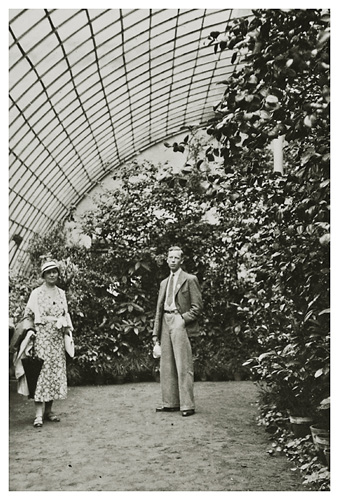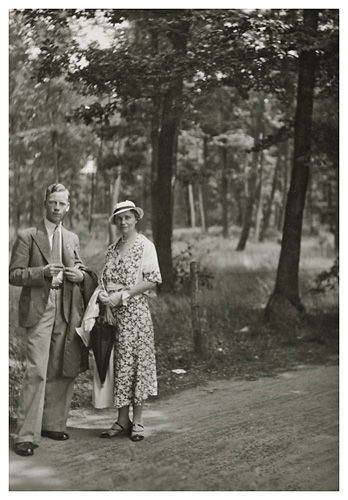 I rejsedagbogen skrev Dorthea videre om den dag: “Vi gik den gamle kendte vej ad skovstien hvor Arne fotograferede…” Vi må antage at dette billede af Ivar og Dorthea på netop denne sti, er det Arne tog.