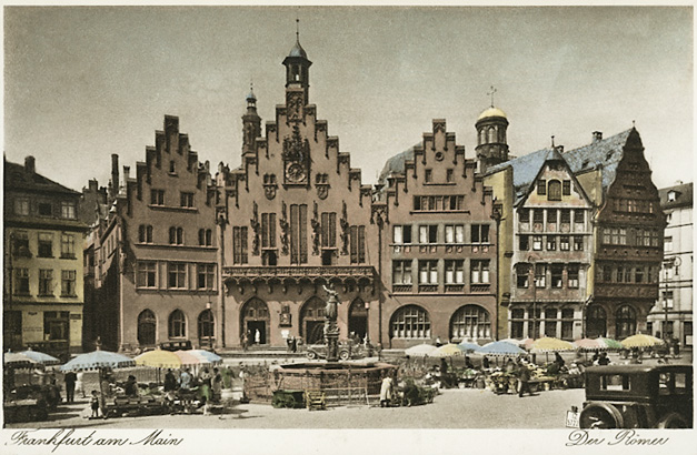 img077 Römerberg Frankfurt - 627Af dagbogen fremgår at Dorthea ikke blev skuffet ved gensynet, og heldigvis vidste hun ikke at det alt sammen bare 8 år senere forsvandt i et flammende inferno under de allieredes bombardement af byen.