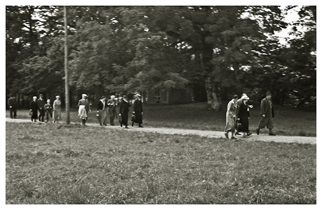 “… og der kom vi forbi ”Hitlerhaus” fra den anden side – et mindre porthus med vagt, og så huset inde i haven [ i øverste højre hjørne]; Arne fotograferede det. Vi fik et par byger på nedturen, men ikke slemt, og solen skinnede, så vi så regnbuen. Da vi kom hjem vaskede jeg strømper osv., og ved 7-tiden gik vi over og spiste, og det varede meget længe, da der var så fuldt af mennesker. Så først halv ni var vi færdige; vi sad kun et øjeblik inde hos mig, så gik vi i seng.