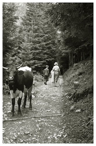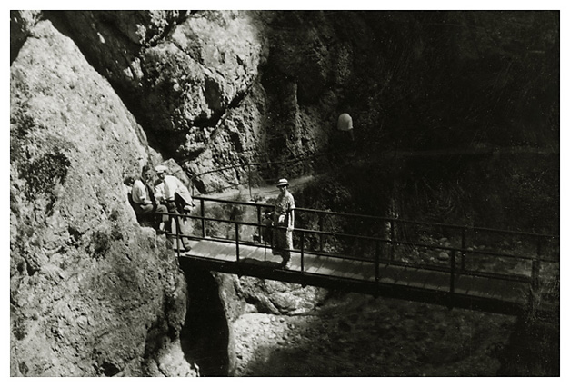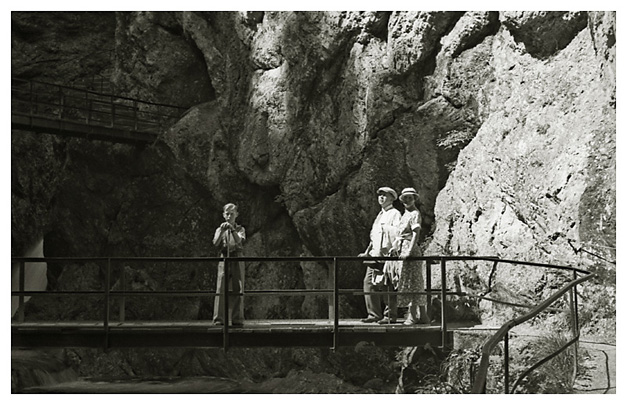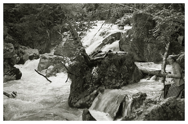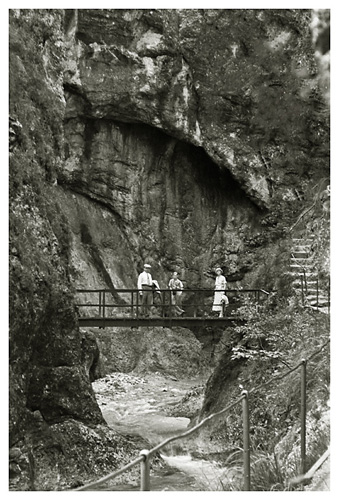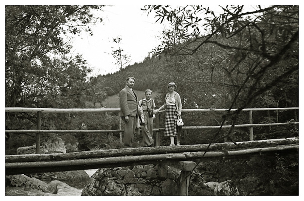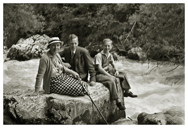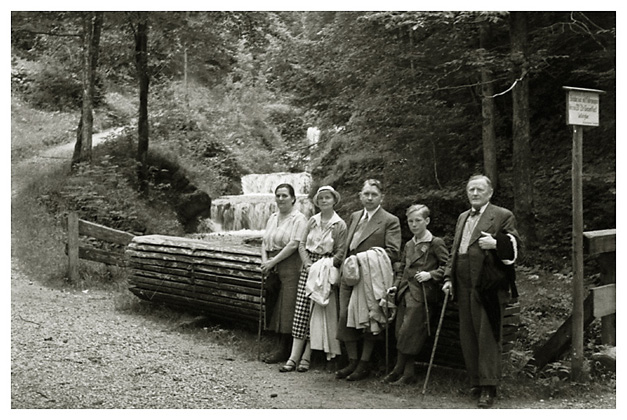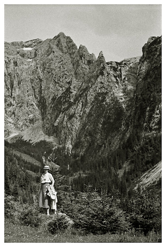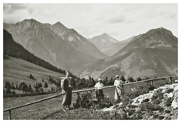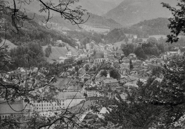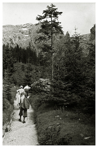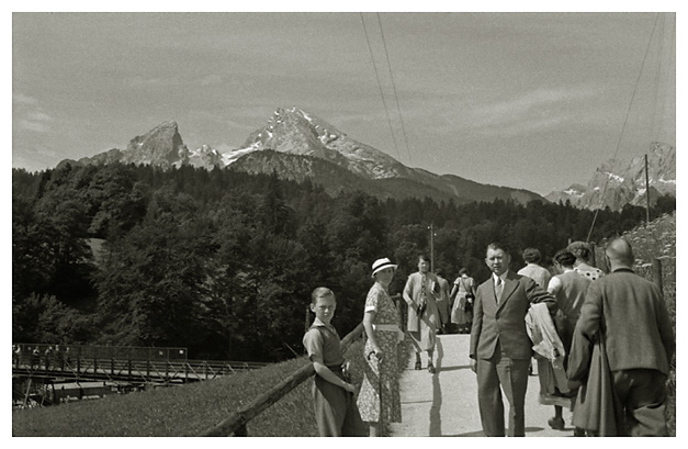 “…så spadserede vi en dejlig tur til Lockstein, hvorfra der var en storartet udsigt over hele Berchtesgaden, som Ivar og Arne fotograferede; på vejen derop var der udsigt til Rostalm og bjergene bag Almbachklamm, den blev også fotograferet. På vejen hjem kom vi forbi et Schnitzerei, og der fandt vi noget til mormor, en servietholder og et varme-underlag, som vi syntes var pænt, og det købte vi så…”