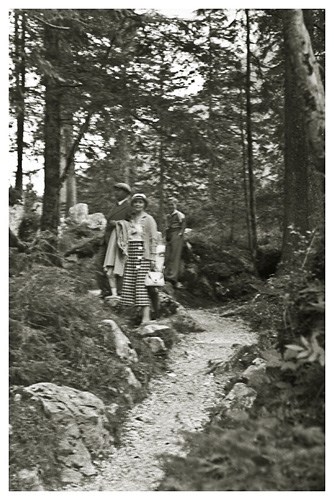 “I Bischopfswiesen gik vi ind til en købmand og købte dejlige store bananer og ferskner; spadserede hen til kirken og vendte så om og gik tilbage ad en dejlig skyggeful skovvej – Maximillian Reiteweg – med vidunderlige udsigter. Inde i skoven gjorde vi hvil på en mægtig stabel træstammer, og sad der i 3 kvarter og nød frugten og udsigten…”