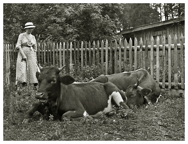 Dorthea. “”3 Køer” udenfor en have ved Bischofswiesen”.