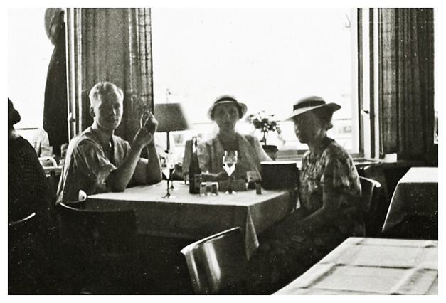 Torsdag den 16. juli 1936 skrev Dorthea: “Vi lå efter bestemmelsen længe, var først ovre at spise klokken 9:30; formiddagen gik med at skrive kort, jeg skrev ni; var henne for at få Berlingeren, men det lykkedes ikke…”