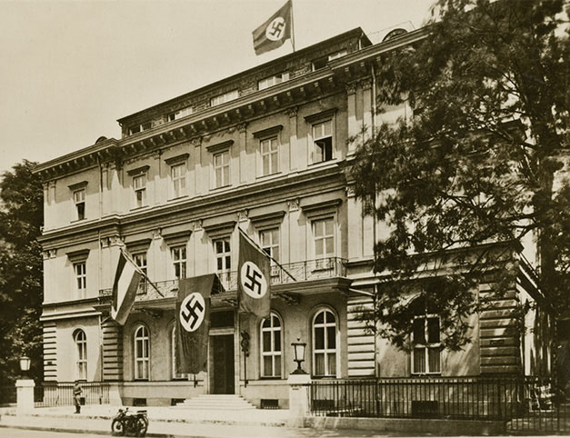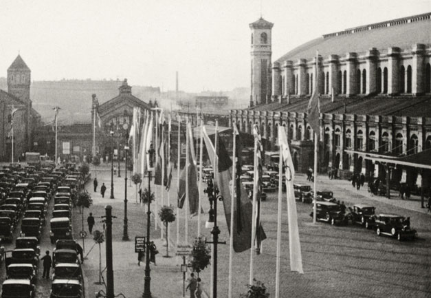 “…begge med balkon ud til Stettiner-Banegårdspladsen, der ligeledes var oplyst og forsynet med rækker af hvide flagstænger med faner. Vi var så glade for vort logi, at vi blev deroppe i en hel time for at nyde det og stod ude på balkonerne og nød storstadslivet.”