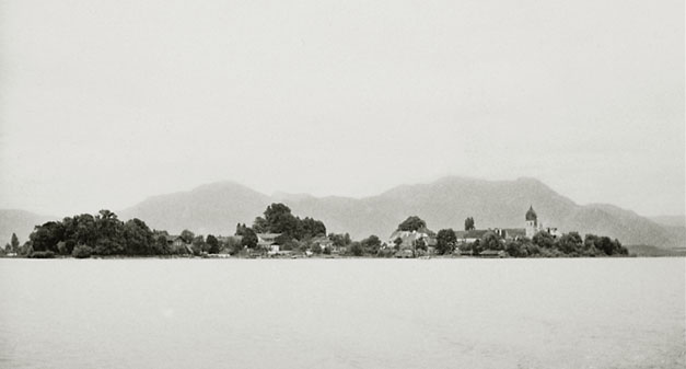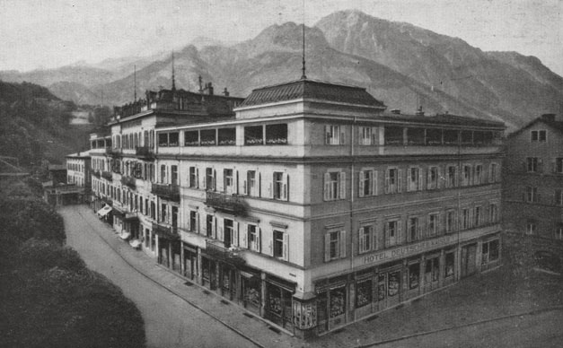 “…så gik vi videre over Aschauerweiher – et sumpbad – til Rostalm, hvor der udfolder sig et pragtfuldt panorama helt ind til bjergene i Østrig. 5:30 var vi hjemme, så hvilede vi os lidt, klædte os om til aften, og efter spisningen gik vi en yndig aftentur hen ad hovedgaden til trappen, hvor landskabet tog sig så pragtfuldt ud; Ivar syntes ingen gang at have set bjergene i så smuk en belysning. Enkelte stjerner dukkede allerede frem. Klokken 9 kom vi hjem, og på gangen mødte vi doktoren, der lige var komet hjem fra sin højfjeldstur; vi gik i seng, han over for at spise.”