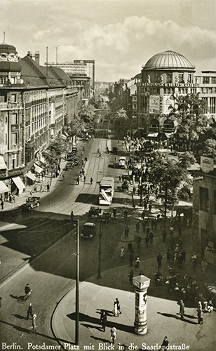 Potzdamer Platz. Bygningen i baggrunden med det runde tag er “Haus Vaterland”.