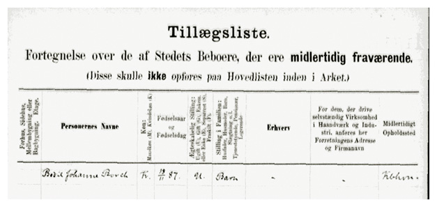 Folketælling fra Rønne 1901 fortæller at Dorthea og Bodil er pensionærer i Vimmelskaftet 4 og står som værende skoledisciple. Vi kan også læse os til at de to søstre er kommet fra Allinge i 1899, så Dorthea og søsteren Bodil har nok været 13, henholdsvis 11 år da de blev sendt til Rønne for at gå i skole. Vi må gå ud fra at de er begyndt med et nyt skoleår, så spørgsmålet er hvornår det nye skoleår begyndte dengang. Den 1. april, det er nok det mest sandsynlige, men vi er ikke sikre.