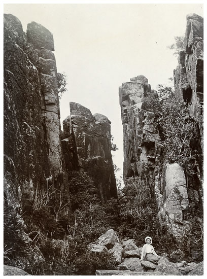 Dorthea fotograferet i dramatiske omgivelser ved “Randkløveskåret” på Bornholms klippekyst mellem Gudhjem og Listed.